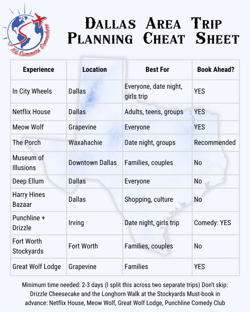 Have you been to the Dallas area? Drop your favorite spots in the comments — I want to know what I’m missing for my next trip! And if you’re in the Maryland/DMV area looking for things to do closer to home, follow me at @itssummerssomewhere — that’s where I share everything local and beyond.