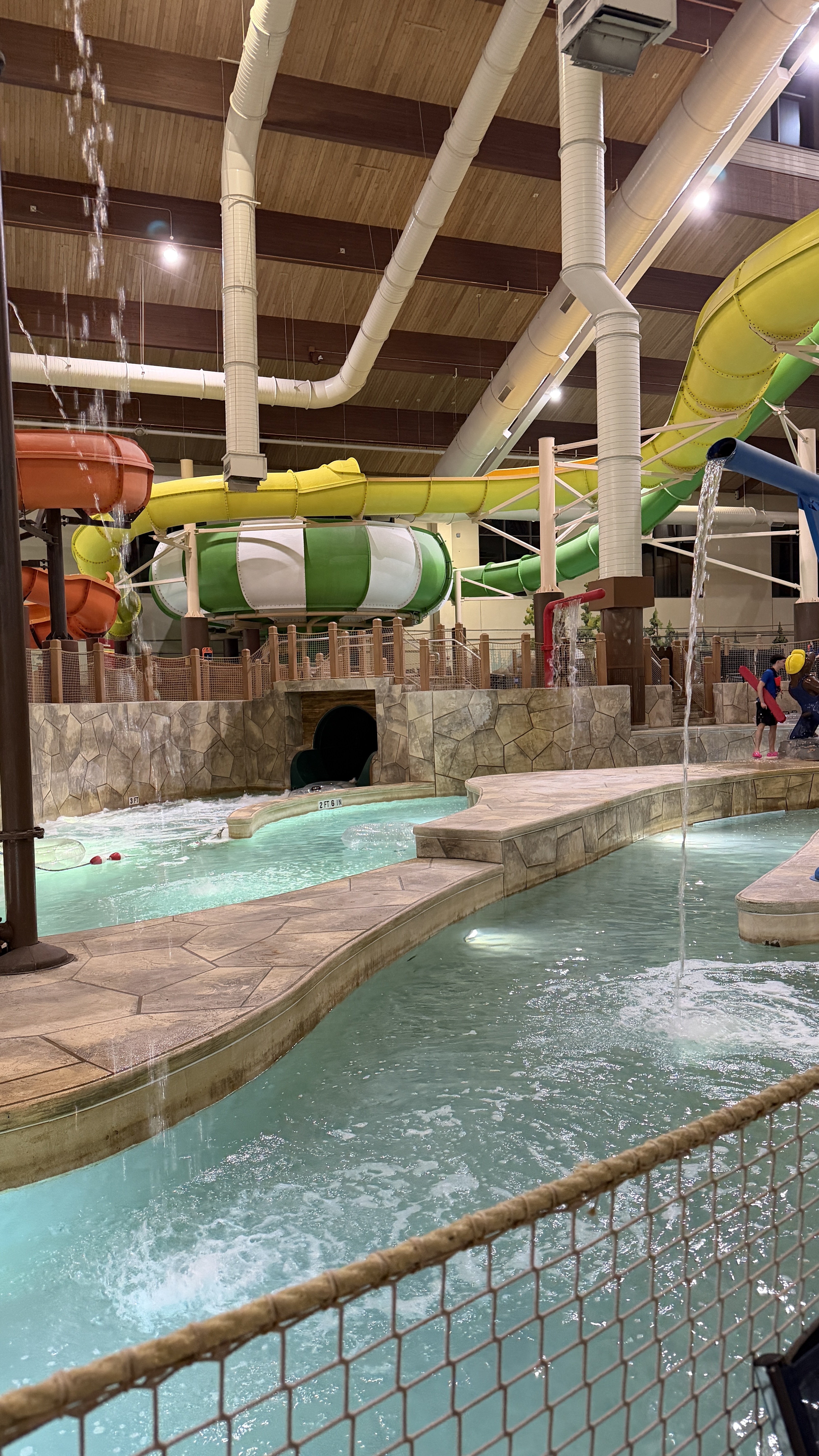 The Grapevine location has a VR room and laser tag — which immediately takes it to another level for kids and honestly for adults too. On top of that, the waterpark itself is 80,000 square feet kept at a cozy 84 degrees year-round, so the Texas weather outside becomes completely irrelevant. Inside you’ll find waterslides, a lazy river, a wave pool, hot springs, and activities for literally every age.