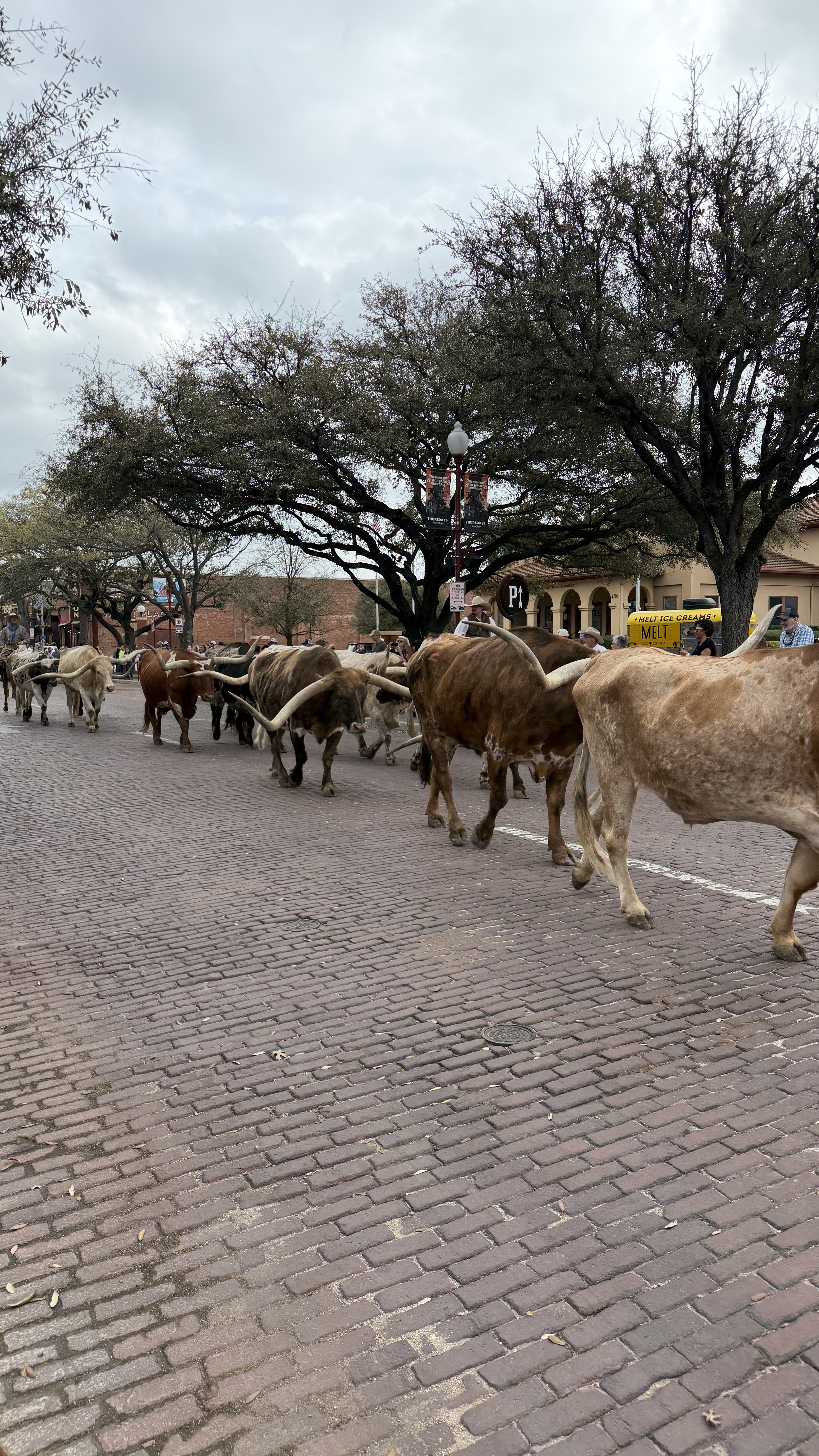 Here’s what blew me away: twice a day, they walk the longhorns right through the Stockyards as a nod to the cattle drives of the past. Watching these massive, gorgeous animals move through the historic brick streets was genuinely breathtaking. It’s a tradition that dates back to the old cattle drive days and seeing it in person hits different than any photo or video can capture.